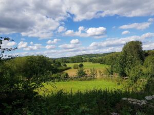 Just over 3 miles, or an hour and half leisurely walk – dog friendly the whole route, with no stiles to deal with, plus some swimming opportunities for the dogs!